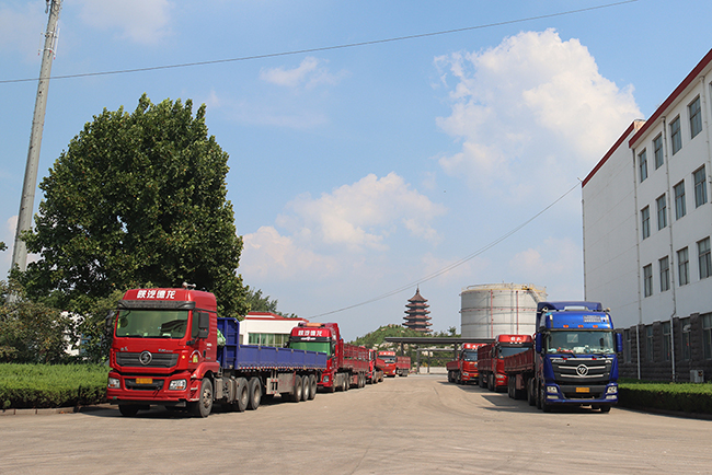走進(jìn)公司各生產(chǎn)車間,備料、投料、裝袋、封包……,各崗位的工人們冒著酷暑、高溫的“考驗(yàn)”,堅(jiān)守一線,把一袋袋金沂蒙復(fù)合肥“送”下生產(chǎn)線;在公司成品庫房,“新鮮出爐”的肥料,整齊碼垛,裝卸工人們揮汗如雨,把肥料裝到車上;在庫房外,等待裝車的運(yùn)輸車輛排起長龍,裝車工作有條不紊,滿載肥料的車輛運(yùn)往全國各地,到處一派繁忙景象。