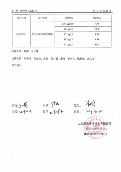 金沂蒙集團(tuán)5月第1次檢測(cè)報(bào)告