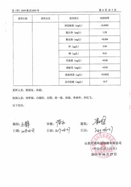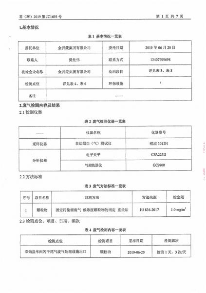 金沂蒙集團6月第1次檢測報告
