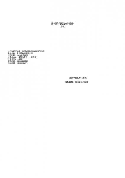 金沂蒙集團2019年第2季度排污許可證執行報告